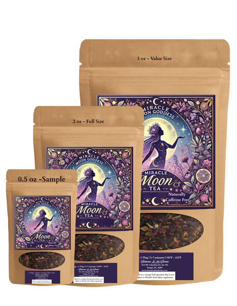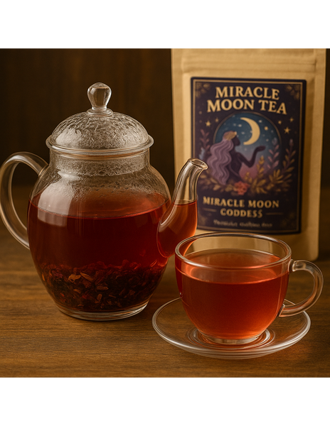 Experience the serene embrace of Miracle Moon Goddess Tea, a handcrafted blend of organic herbs, roots, and fruits inspired by nature’s cycles and feminine energy. Created to support moments of rest, renewal, and reflection, this caffeine-free loose-leaf tea invites you to reconnect with your body and spirit through a gentle, nurturing ritual.